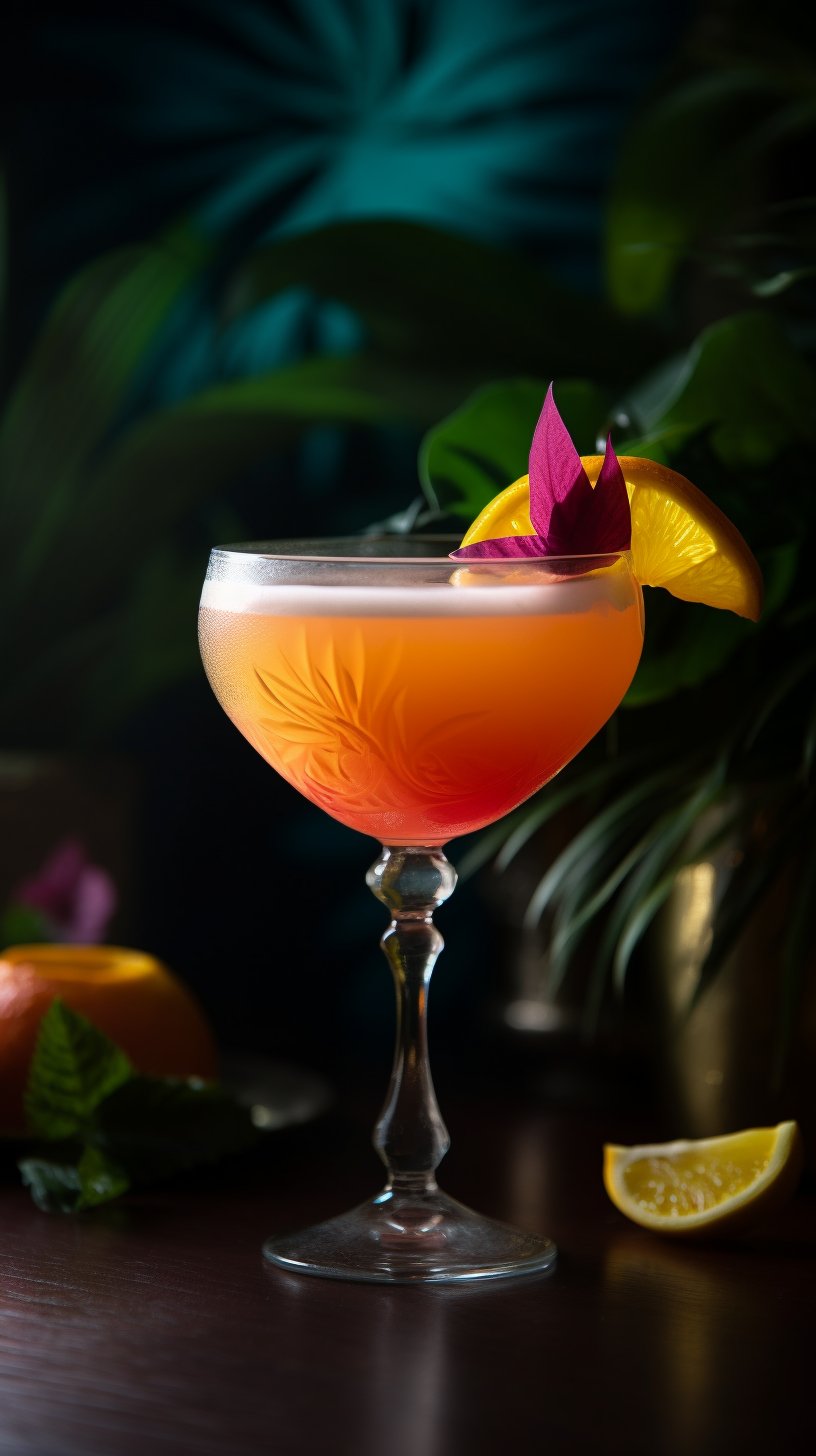Frozen Tropical Oasis: For a playful texture, blend the ingredients with crushed ice instead of shaking. The result will be a slushy, frosty concoction perfect for hot summer days, with a texture akin to a delicious tropical sorbet.